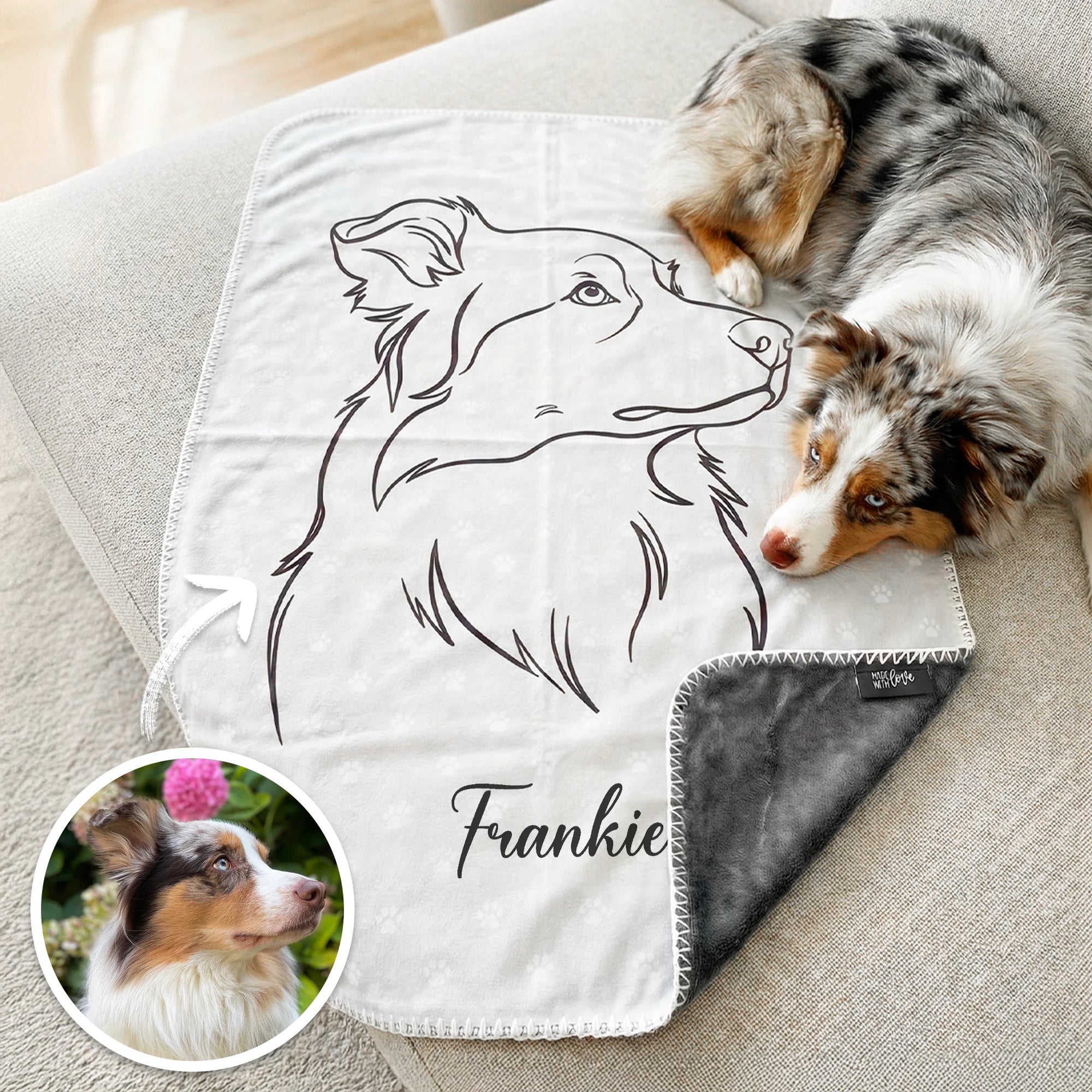 Lade einfach ein gut belichtetes Foto der Pfote deines Lieblings hoch – wir isolieren den Abdruck und integrieren die Pfote stilvoll ins Design.