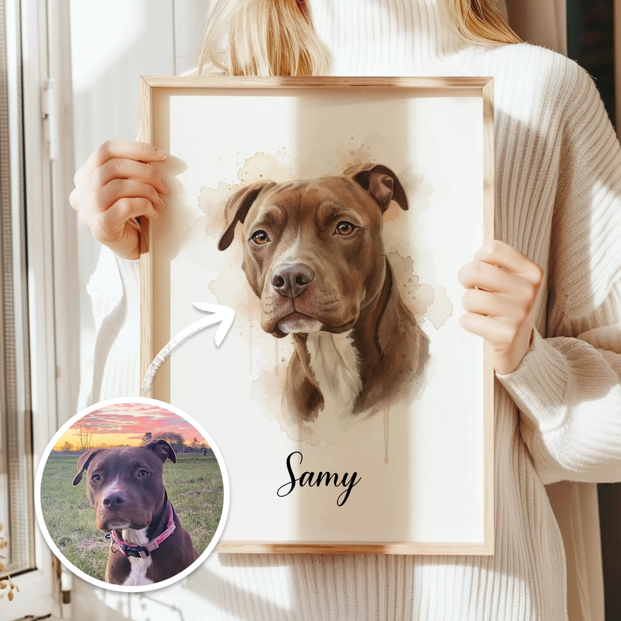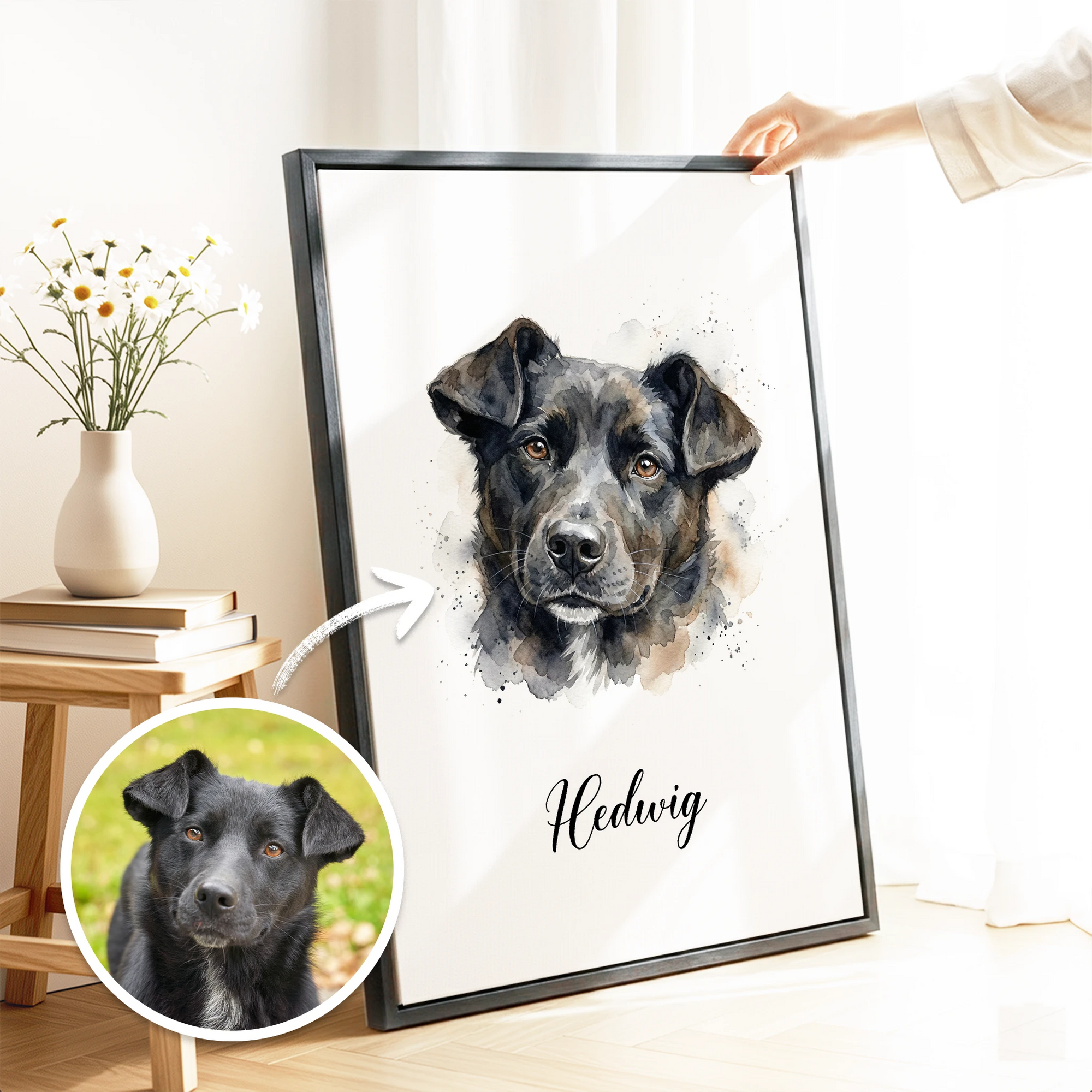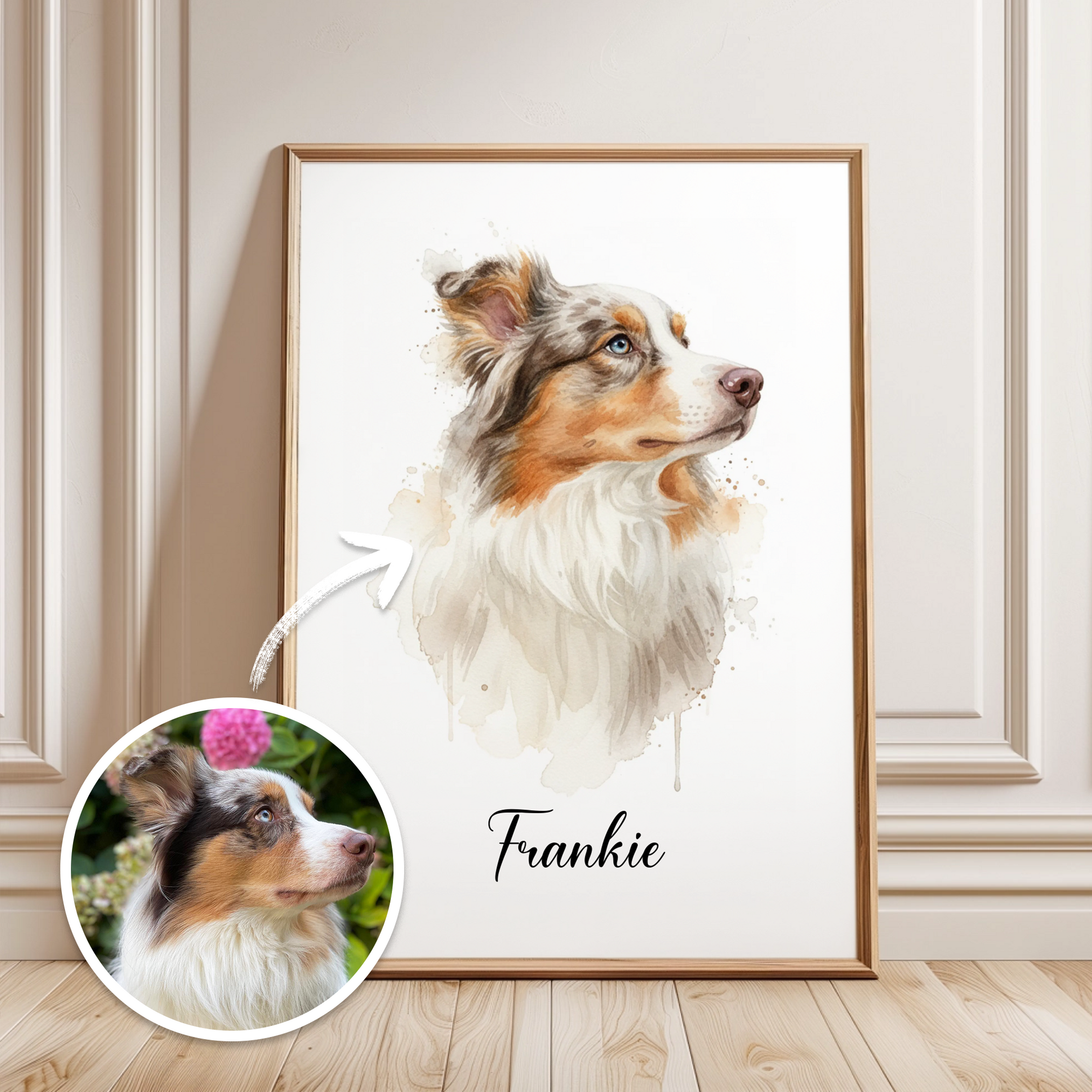 Dein Liebling als zeitloses Aquarell-Kunstwerk. Verewigt auf Fine-Art Poster oder Galerie-Leinwand.