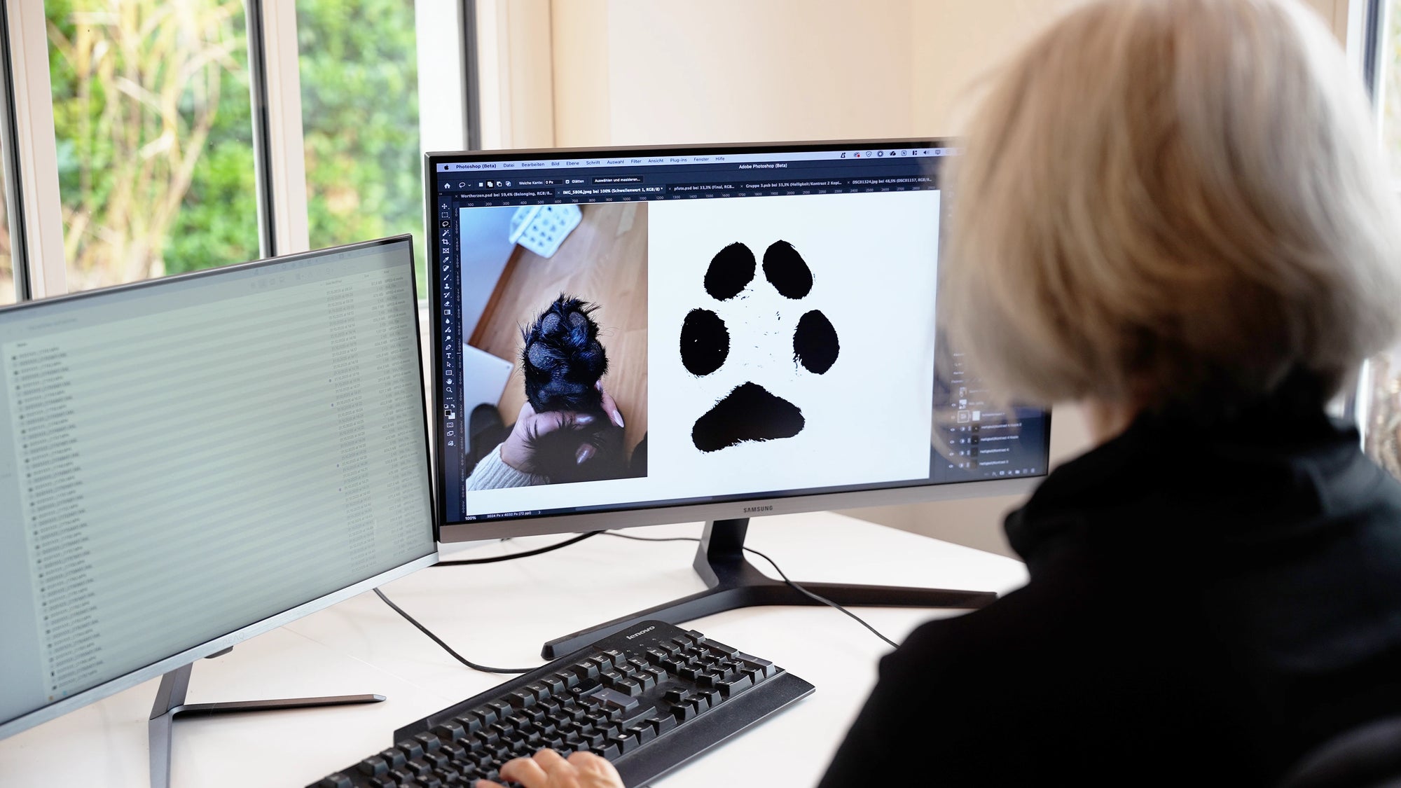 Lade einfach ein gut belichtetes Foto der Pfote deines Lieblings hoch – wir isolieren den Abdruck und integrieren die Pfote stilvoll ins Design. Perspektive, Kontrast und feine Details werden behutsam angepasst, damit das Ergebnis originalgetreu erkennbar und harmonisch integriert ist.